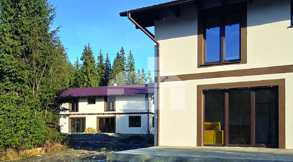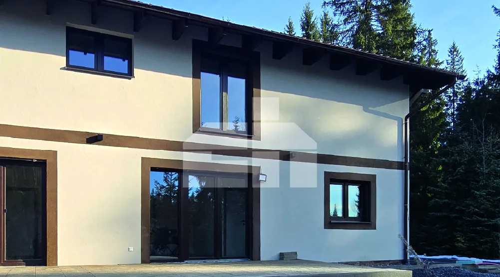 The project of a two-story large modern cottage or a family house. Custom designed to meet clients expectations with built-up area of up to 122 m² on one floor. Ground floor provides enough space for all daily activities. In addition to the well-lit living room connected to the space for the dining table, there is a partially separate kitchen with a pantry, one bedroom, a bathroom with a separate toilet, a closed entrance and a large technical room that can also be used as a storage space. On the first floor , in addition to 3 bedrooms, 2 bathrooms, one separate toilet, there is also a common recreation area – the second living room. Any layout modifications are possible in the project.